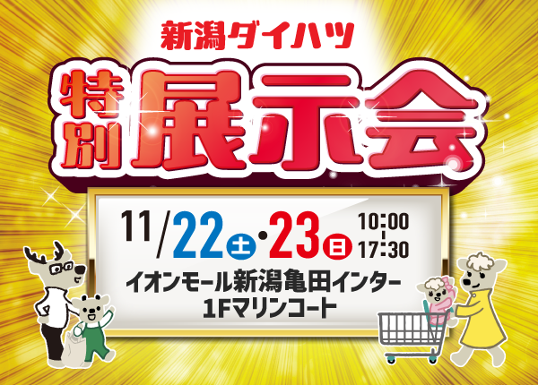 11月22日・23日の2日間、イオンモール新潟亀田インターで新潟ダイハツの特別展示会開催!