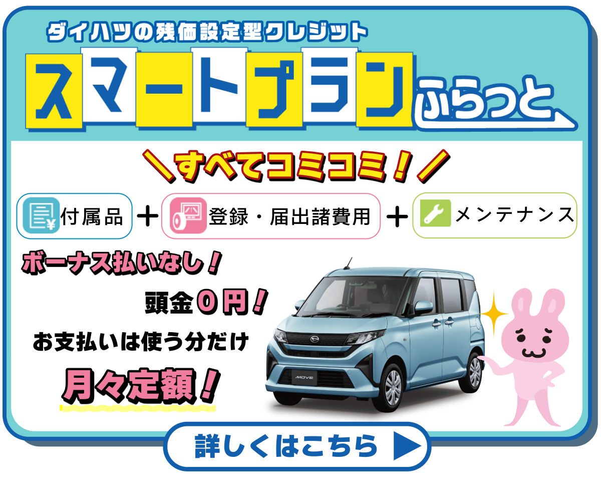 2025年12月6日(土)~12月14日(日)までに、ムーヴの新車と用品55,000円分(税込)以上を、ワンダフルクレジット利用でご成約いただき、2026年2月27日(金)までに届出いただくことを条件に55,000円(税込)割引いたします。