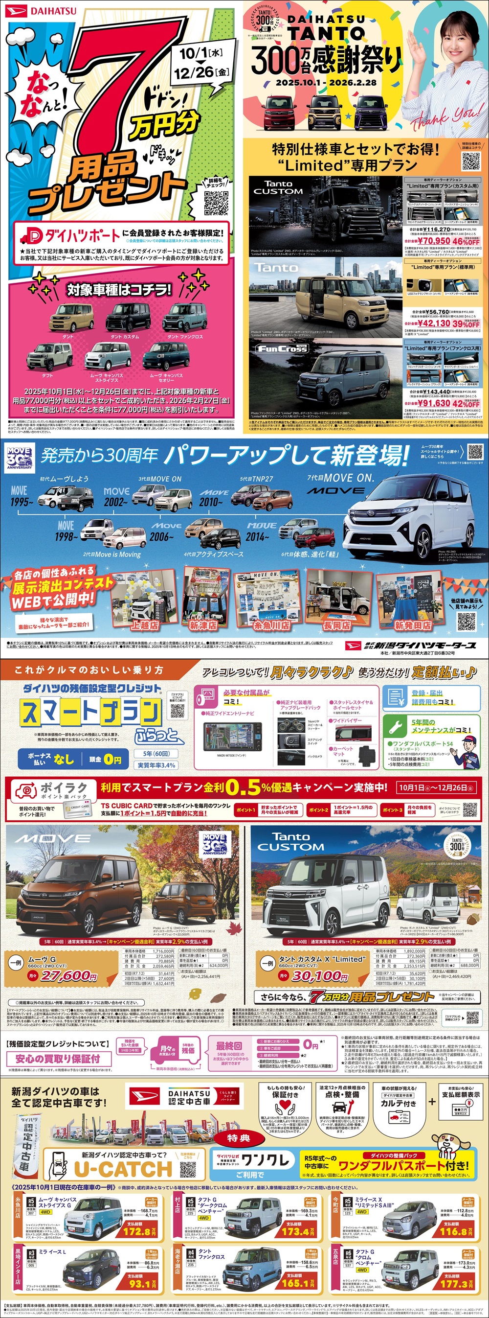 【折込広告】7万円分用品プレゼントやタント300万台感謝祭りなどお得がもりだくさん!