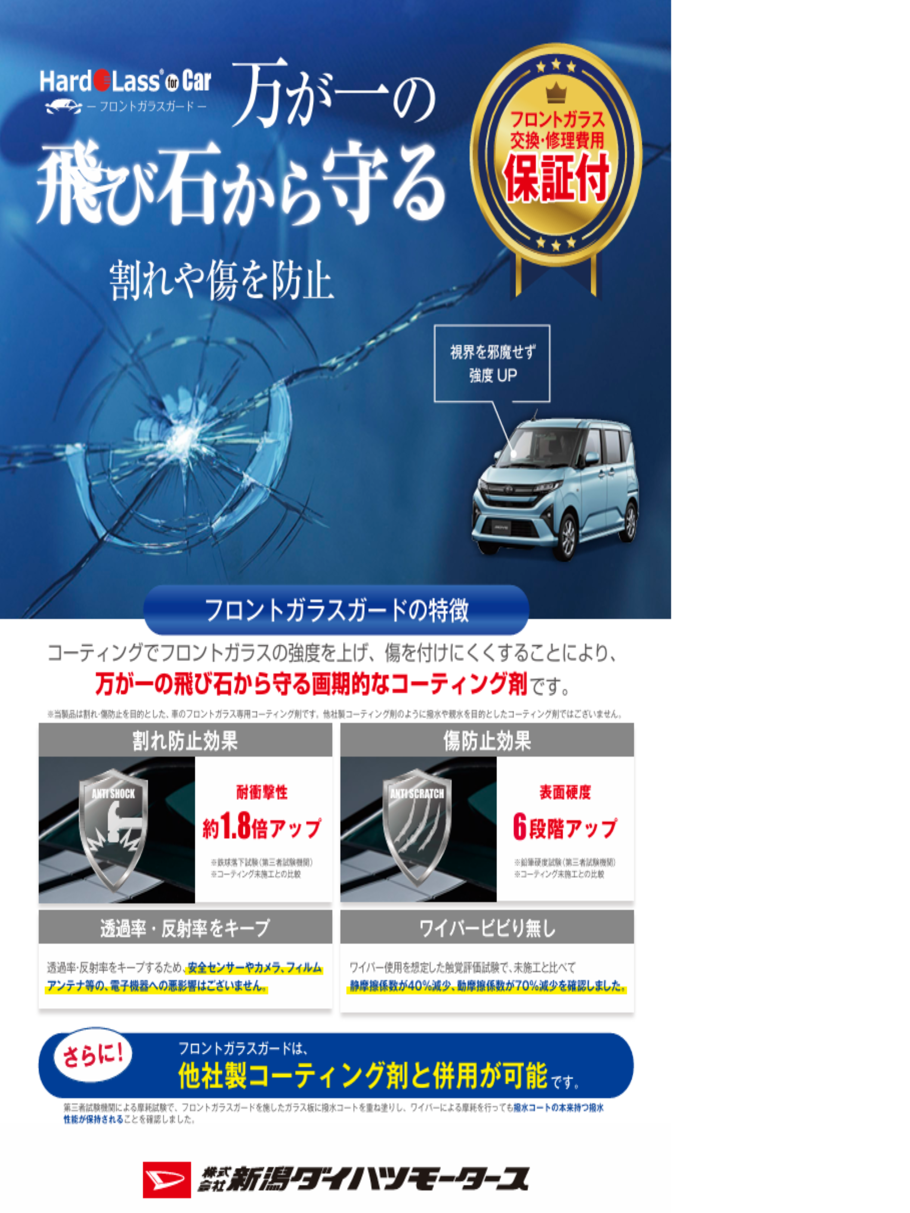 2025年12月24日ダイハツ新津走行中の飛び石からフロントガラスを守ろう(=゚ω゚)ノ