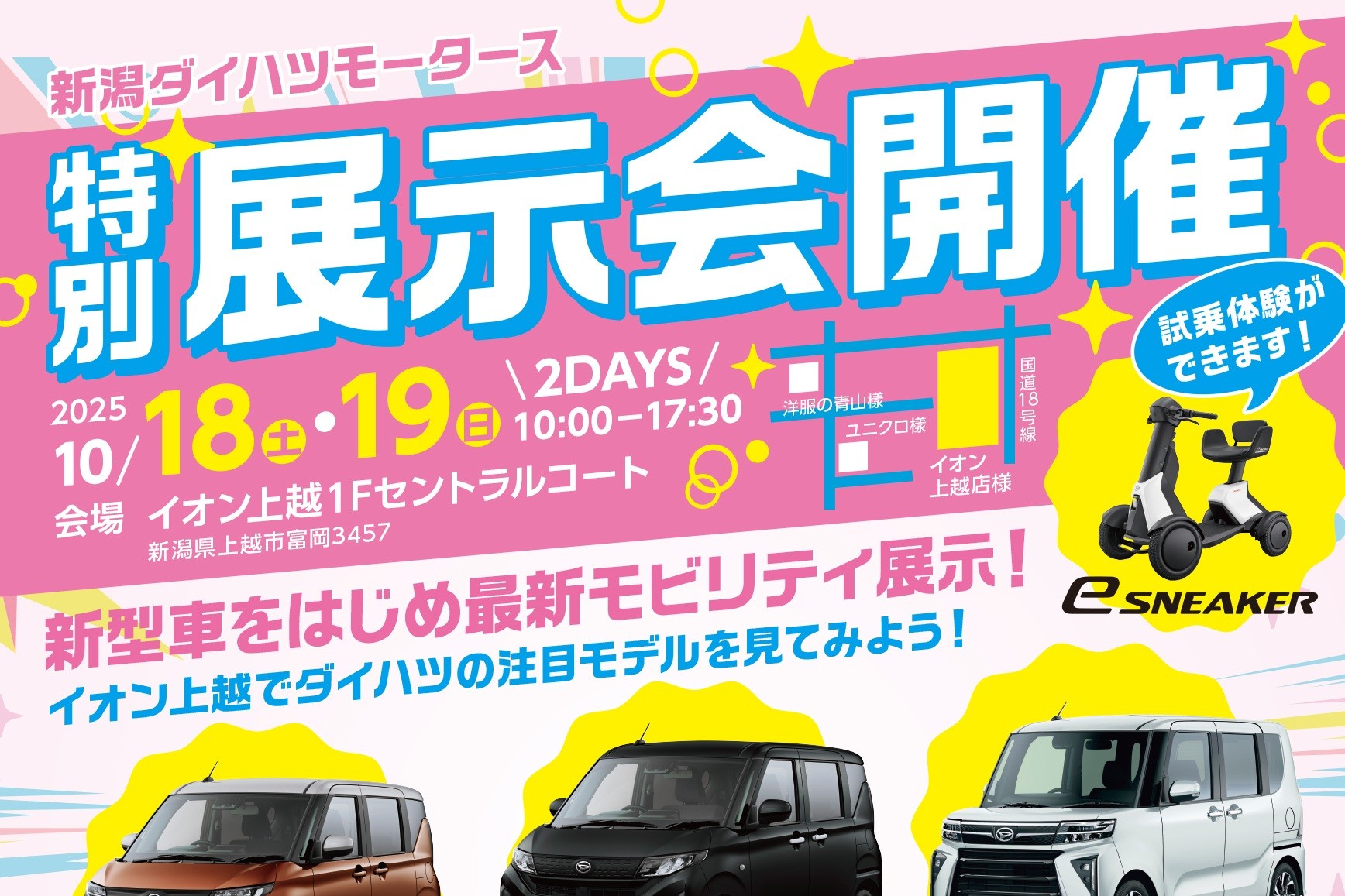 10月18日(土)、19日(日)の2日間、イオン上越店様にて出張展示会を行います🚗✨
