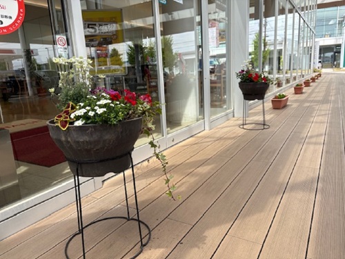 最近暖かい時期になってきましたのでショールーム入り口にお花を飾りました。
