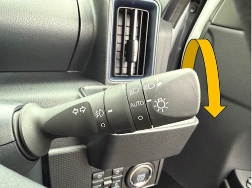 ヘッドライトスイッチを矢印の方向に回していただくとスモールライトになります!