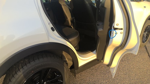 スイングドア車も、同様に後部ドアの断面、外側のドアハンドルの近くに位置しています!