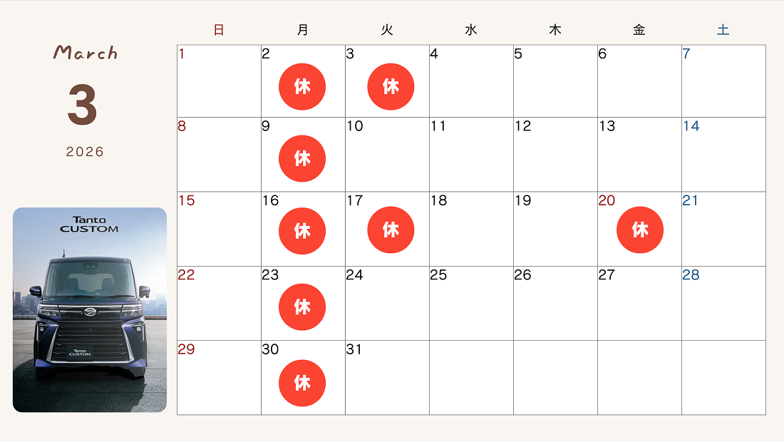 3月のお休みです!