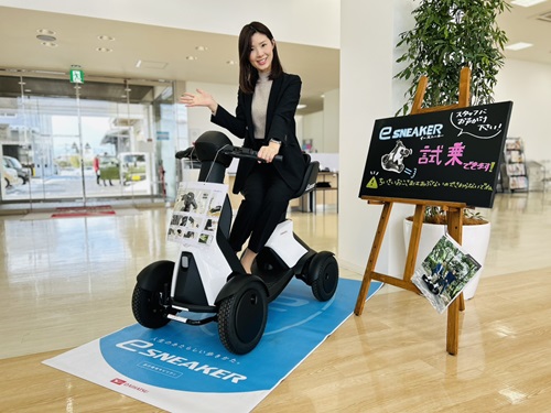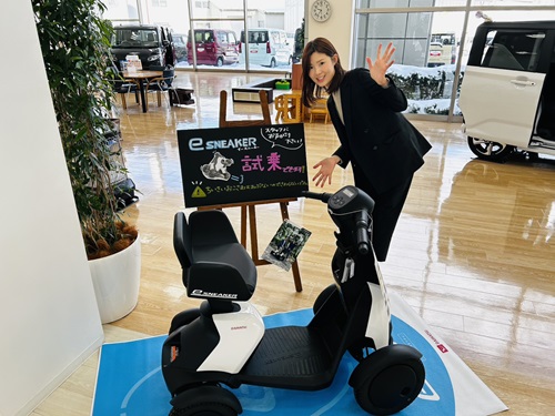 私も実際に試乗をしてみましたが、歩行者や自転車とほぼ同じ目線で大人の早歩きくらいのスピードで段差も登れて心地よい運転ができる乗り物でした。買い物や散歩など、日常のちょっとしたお出かけの移動手段として使えるそうだなと思いスタッフ間でも大好評です!!