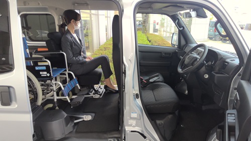 ハイゼットカーゴのスローパーは写真の通り、車イス横にシートがあるので