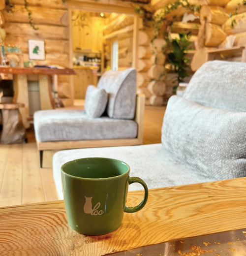 ログハウスに使用されているのは佐渡の木である「あてび」。佐渡では古くから家屋や工芸品の材料としてだけでなく、その優しい香りや耐久性から、島の暮らしに深く根ざしてきました。