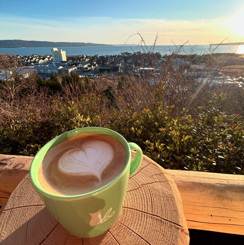 佐渡島・真野湾を見下ろす高台に佇む「LAGON CAT COFFEE(ラグーン キャット コーヒー)」は、佐渡の美しい自然に包まれながら、ゆったりとした時間を過ごせる癒しのカフェ。