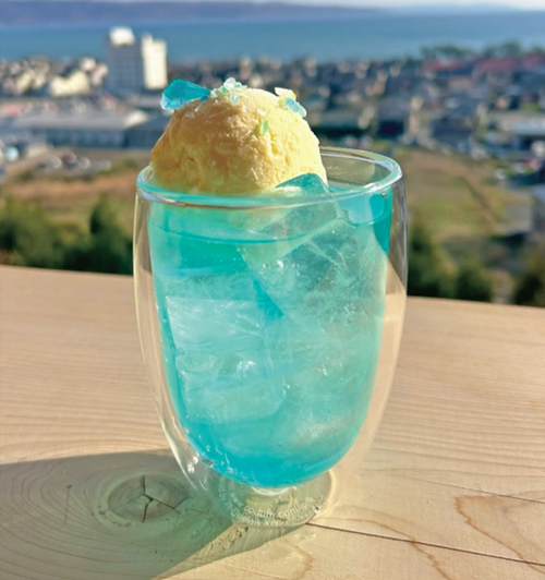 さらに、まるで真野湾の海を閉じ込めたかのようなブルーのクリームソーダも。シーグラスキャンディのかけらを散りばめた幻想的な一杯は、目でも楽しめると評判です。