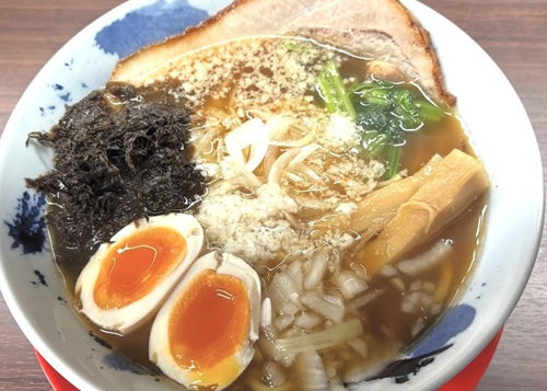 スープは醤油ベースで、魚介系と動物系の出汁をブレンド。