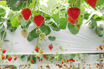 新潟が誇るいちごブランド「越後姫」約12,000株栽培。甘い香りが漂うハウスの中で雪や雨でも楽しくいちご狩り!「雪国アグリパーク湯沢いちご村」は春のおすすめスポットです。